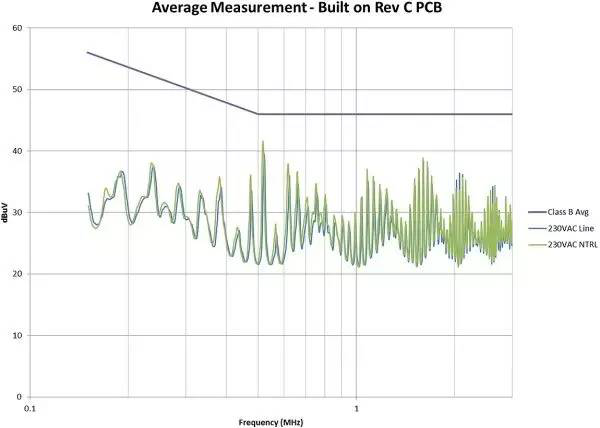 圖3是修改后的效果圖。我們在故障點位置為EMI規(guī)范獲得了大約6dB的裕量。此外,我們還顯著減少了總體EMI簽名。所有這些改善都僅僅是因為布局的調(diào)整,并未改變電路。如果您的電路具有高電壓開關(guān)并使用了屏蔽距離,您需要非常小心地對其進(jìn)行控制。